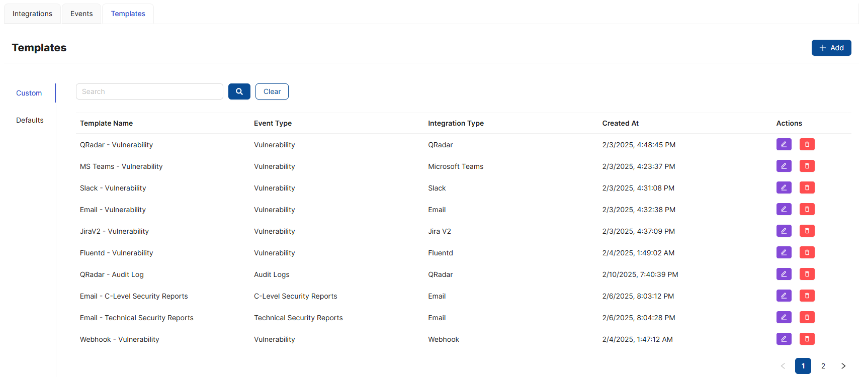 Templates are the message bodies tied to the desired integrations. Any triggered event will be binded with the corresponding template and then delivered with the desired integration. For example, when a C-Level Security Reports event is triggered, the event is added into the specified e-mail template, including the desired message body and the information regarding the event (and even the report as an attachment) and then sent via the e-mail system.
